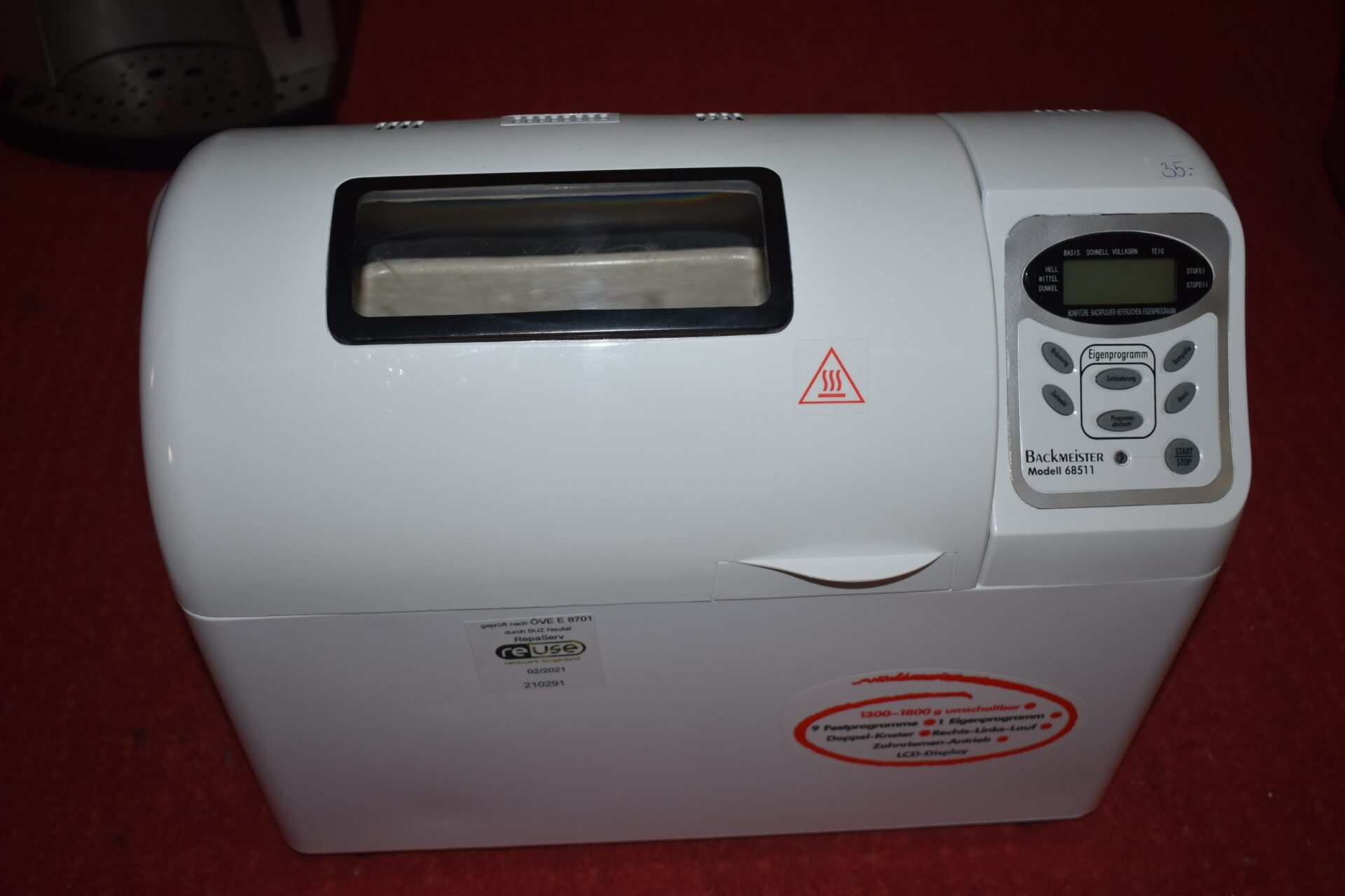 Der Brotbackofen wurde durch Professionisten gereinigt, getestet und mit einer Prüfplakette versehen.