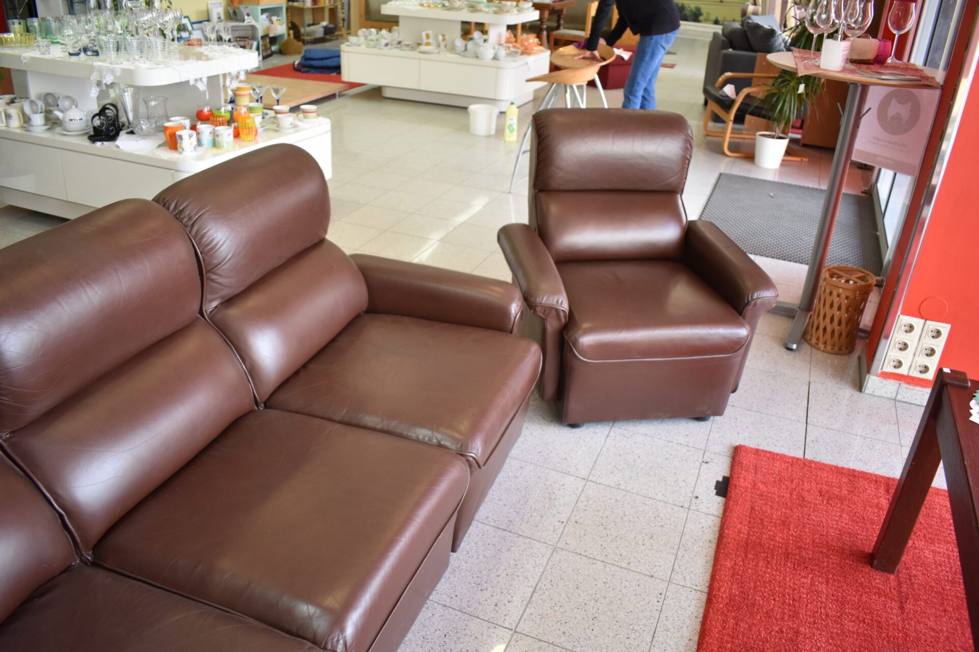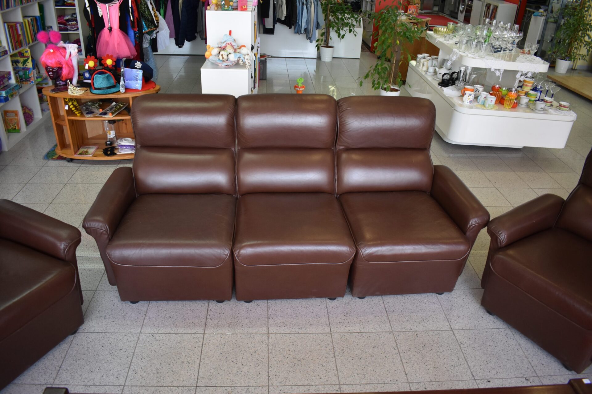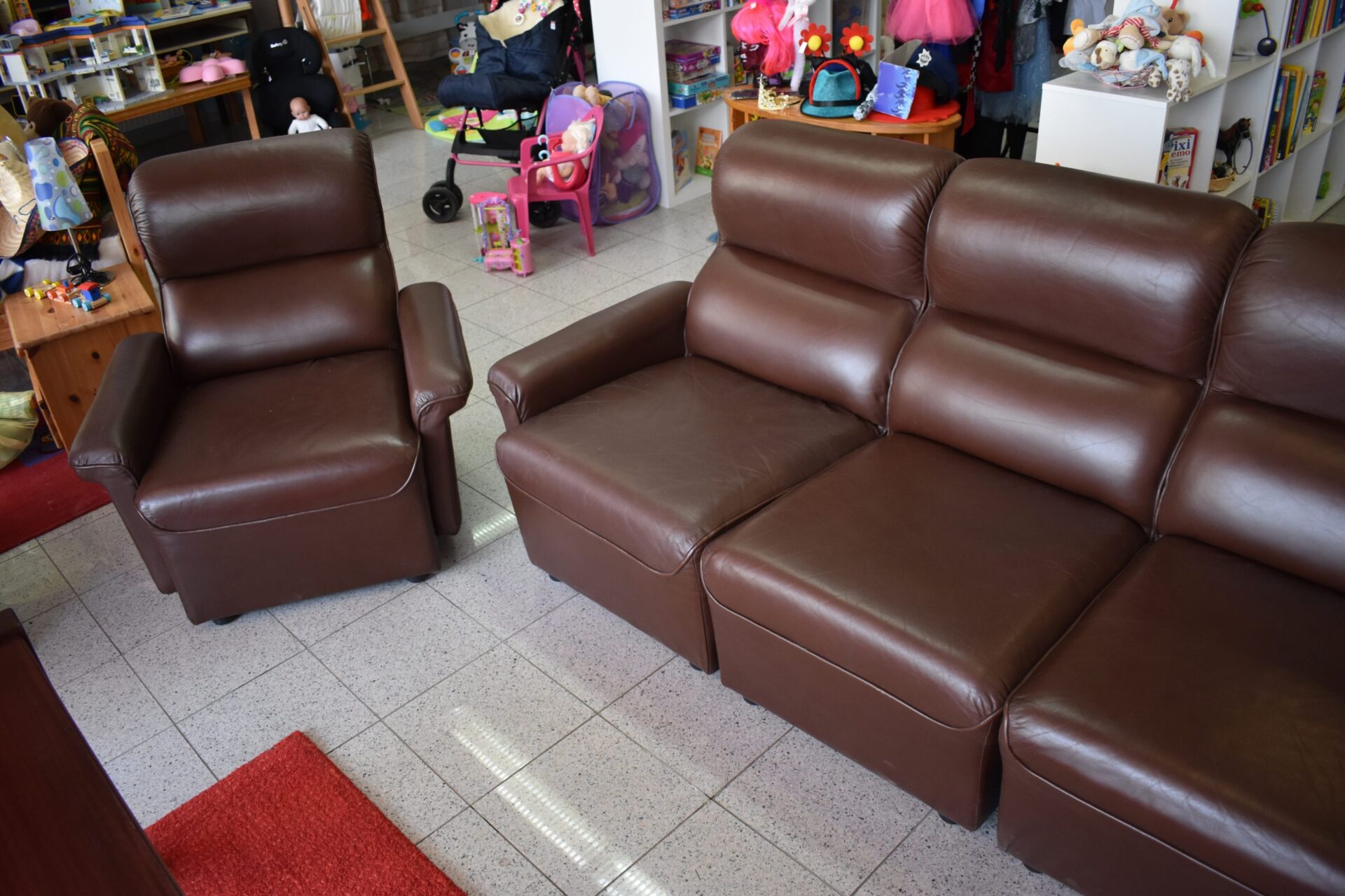 Couch in Lederoptik mit zwei Polstersessel in guten Zustand.