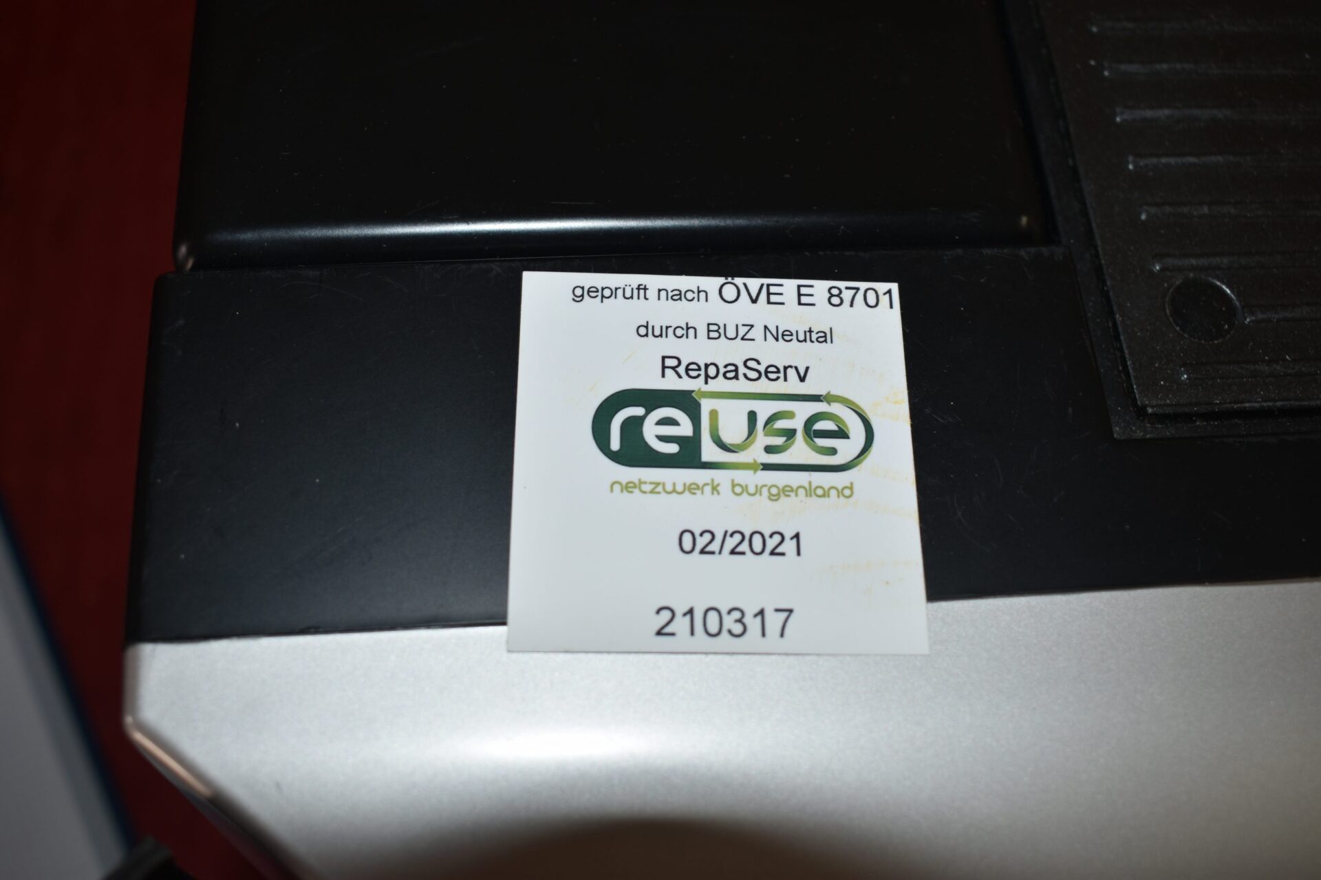 Kaffeeautomat wurde durch Professionisten gereinigt, getestet und mit einer Prüfplakette versehen.